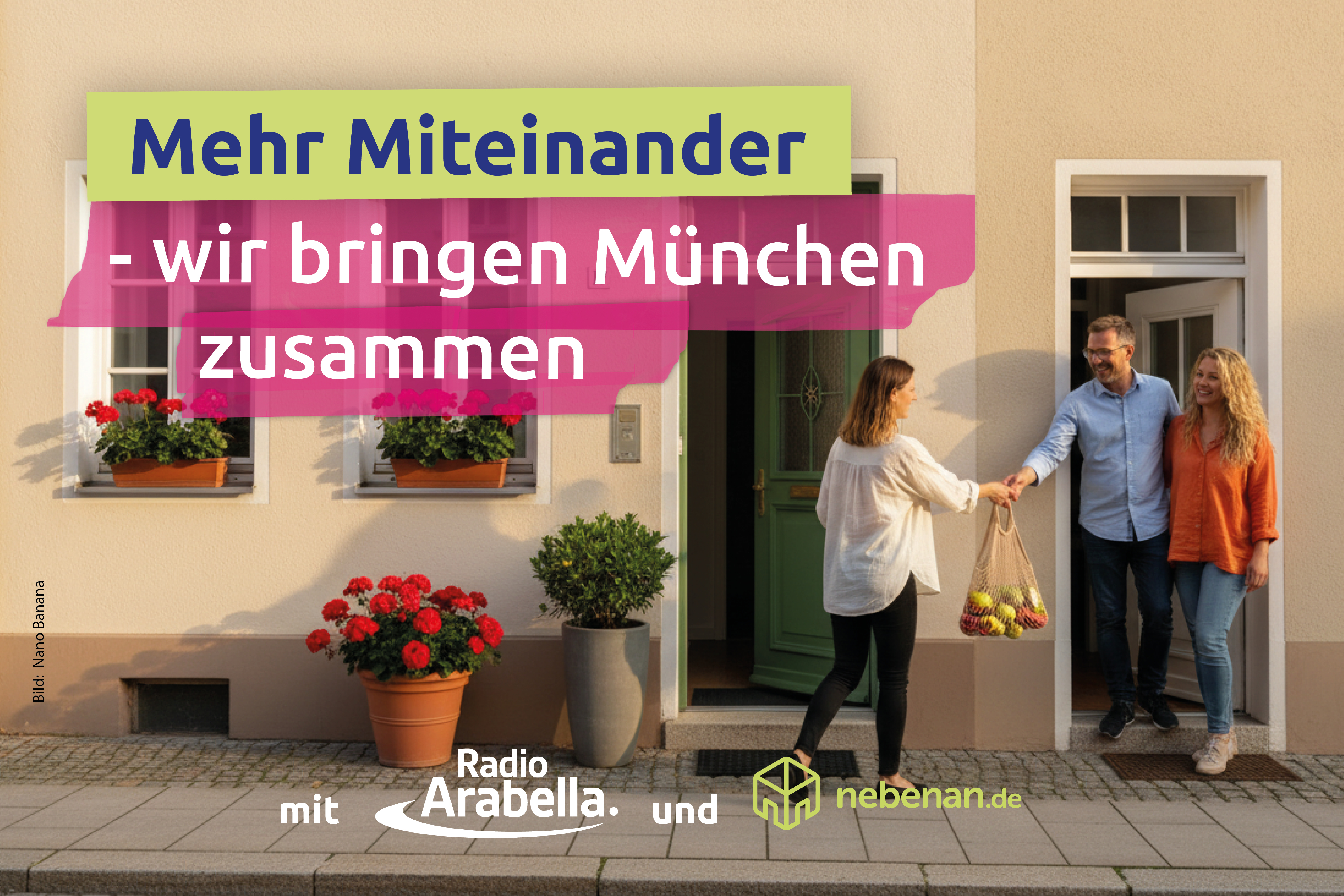 München ist voller besonderer Begegnungen – das erleben täglich über 271.000 aktive Nachbar:innen bei nebenan.de. Jetzt bekommen diese Geschichten eine Stimme: Gemeinsam mit Radio Arabella München startet nebenan.de das neue Format „Mehr Miteinander – mit Arabella München und nebenan.de“.